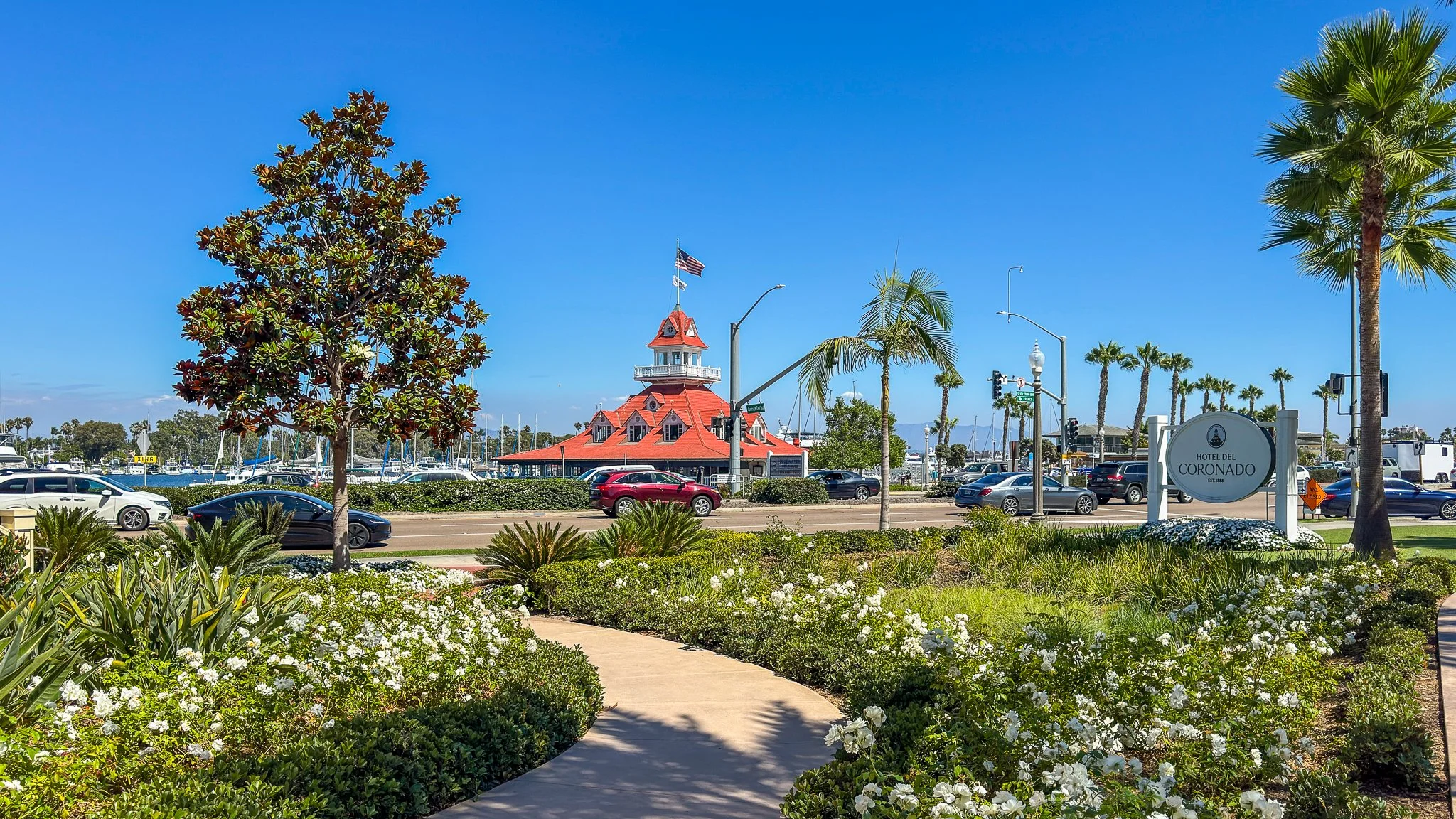 At the nearby Star Park Circle, you’ll find several memorials honoring military families and service members, reflecting Coronado’s long-standing naval heritage. The circle is also surrounded by beautiful historic homes and offers a quiet, shady spot to pause before continuing your walk toward the Hotel del Coronado.