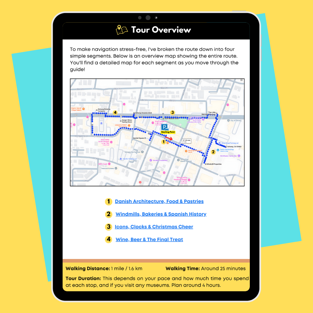Works Offline: The guide is fully downloadable and works without an internet connection. (Note: There are clickable links in the guide which require an internet connection. However, the tour can certainly be done without using the links.)